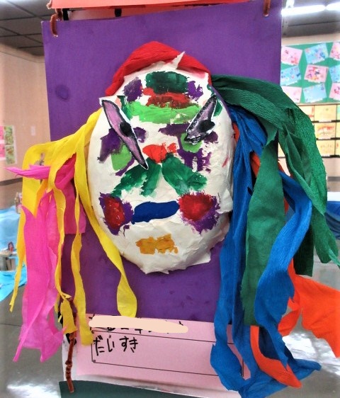 個人作品・・『パワーをあげまする!』 日本の伝統芸能「歌舞伎」の『隈取 くまどり』をお面で表現しました。