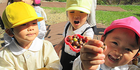 栄光学園では、五感(目・耳・鼻・口・手)をつかった感覚学習を通して、この時期にしかできない適期教育を知 (頭)・徳(心)・体(からだ)のプログラムにより実践しています。 また、心根が育つ幼児期に、自然やいのちに触れ、音楽リズムを感じ、心を通わせ合う言葉の教育に力を入れています。そして未来に向けて、地球を守る環境教育、国際人育成につながる文化芸術活動をすすめていきます。特にお子様が安心して、心豊かに生活できる環境づくりは、幼稚園の物的、人的環境はもとより、共に育つ「親子入園」であると考えています。