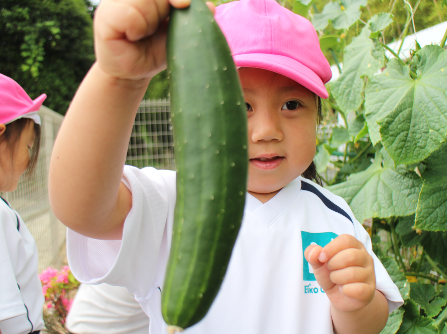 収穫体験でキュウリを収穫しました。