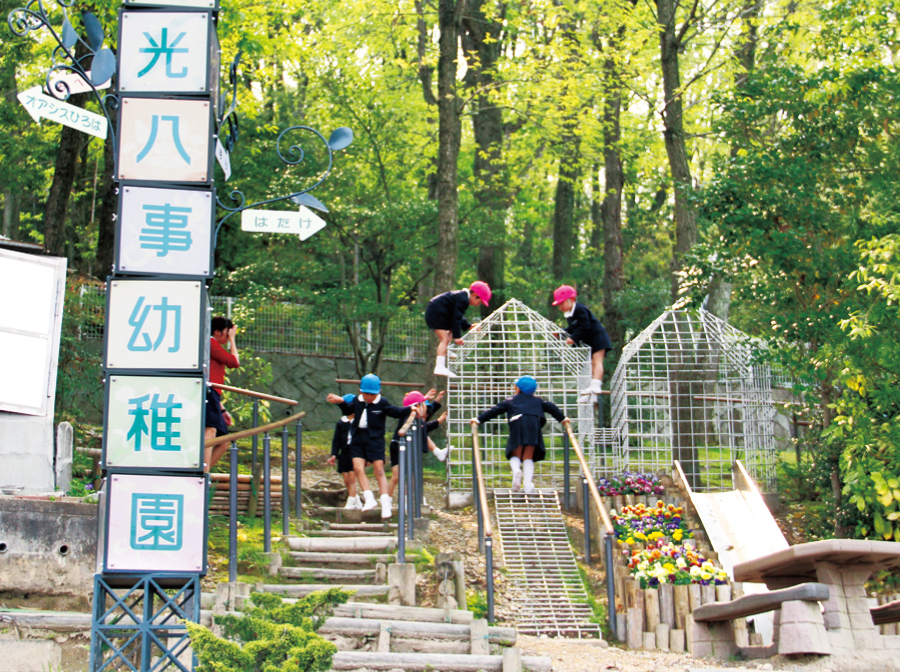 森の小道に続く園庭で子どもたちは毎日冒険をしています。