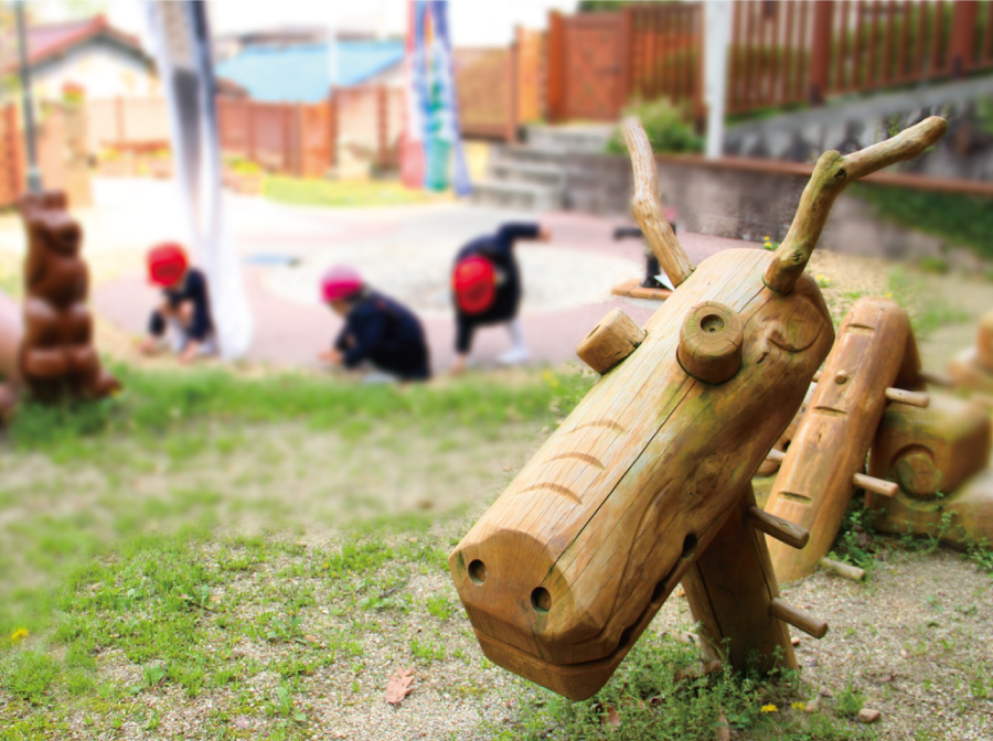 自然素材を活かした遊具には、季節を重ねて風合いができます。