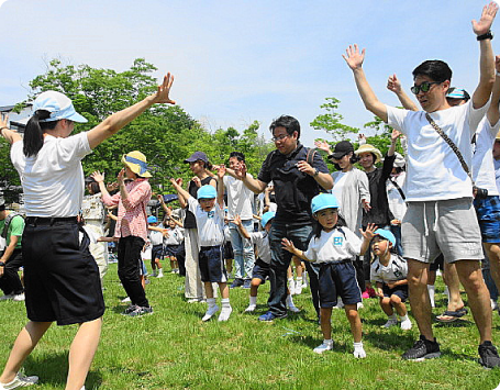 幼児期は元来家庭でのご両親の愛情、スキンシップをうけて、少しずつ母子分離していく時期です。そして年少組に入園されると、お友だちをモデルにして生活習慣が整っていき、お友だちの数も増えていきます。