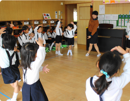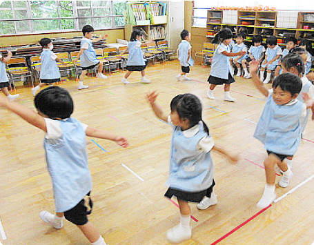 心を一つにしたリズムやテンポになるよう気をつけ、けじめある行動を取れるようにします。