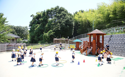 子供たちは全員、園庭で好きな遊びを選んで楽しみます。