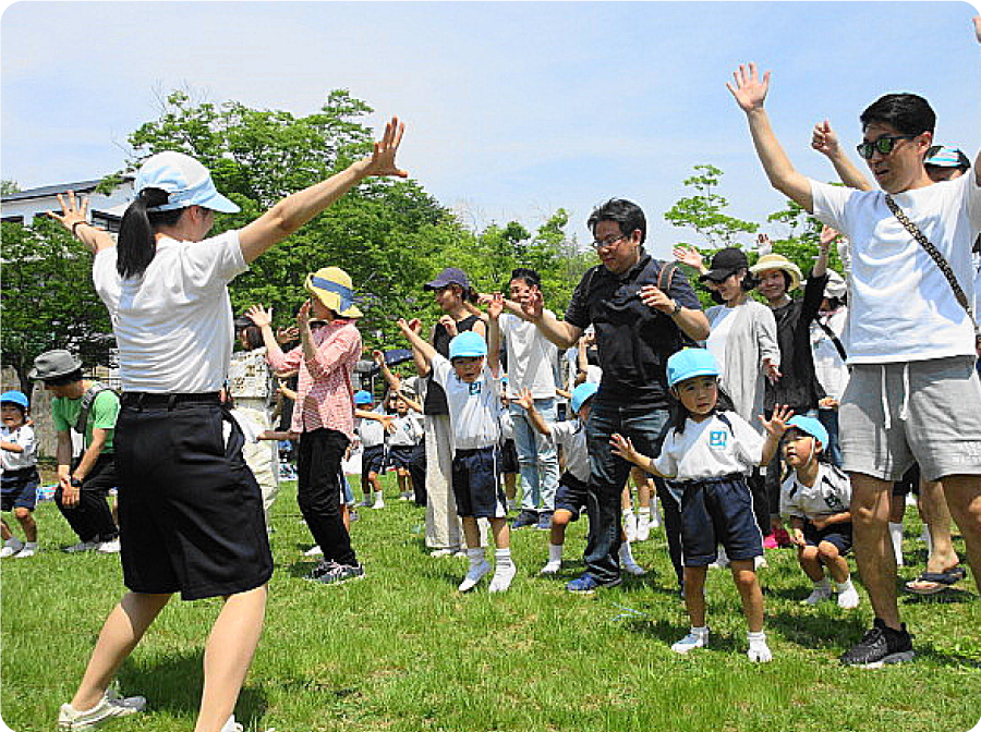日本の四季の変化、生き物との出会いの中で、自分でできること、わかることを喜び、がんばる『自分づくり』、おともだちとともに学びあう仲良しの『友だちづくり』、子どもたちがルールや目標をもって創り出し、守り合う『仲間づくり』をすすめます。