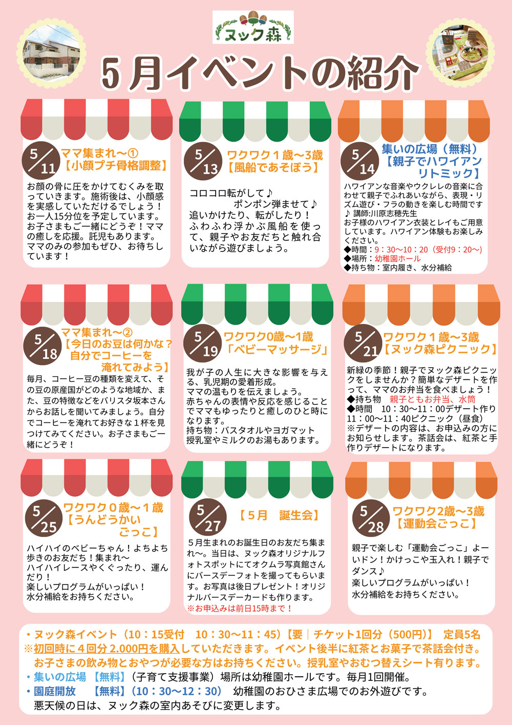 ②園庭開放&青色文字のイベントは【無料】
